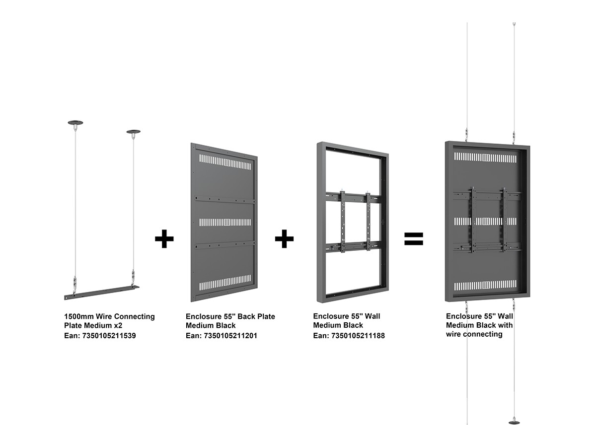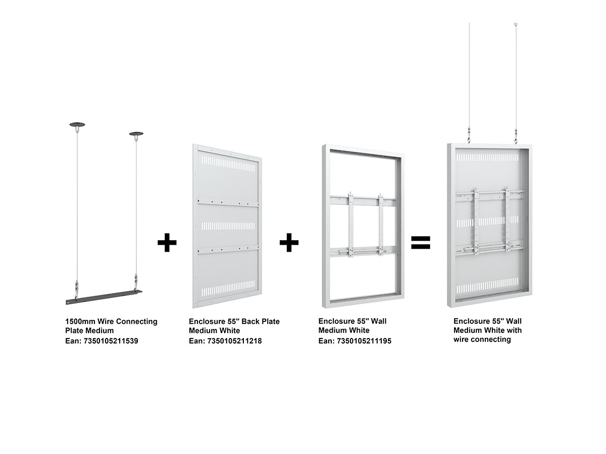 The M Pro Series 1500mm Wire Connecting Plate Medium creates a possibility to mount the display and enclosure between floor and ceiling with discreet, yet safe solution.