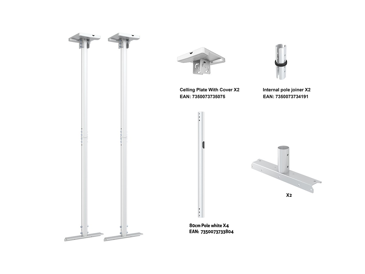 Product code:M Pro Series - 1500mm Pipe Connecting Plate Large White - Ceiling mount kit for Enclosure 75-98”, steel, 1,5m length, 1 screen - white