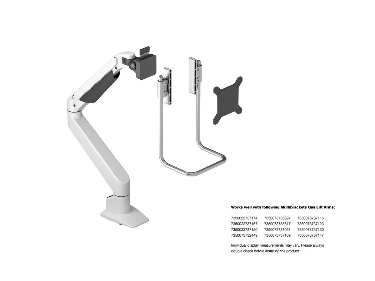 The M Gas Lift Arm Handle is a single handle drop down monitor bracket can be inserted into most configurations with VESA100 standard hole patterns and with most Multibrackets Gaslift monitor arms.