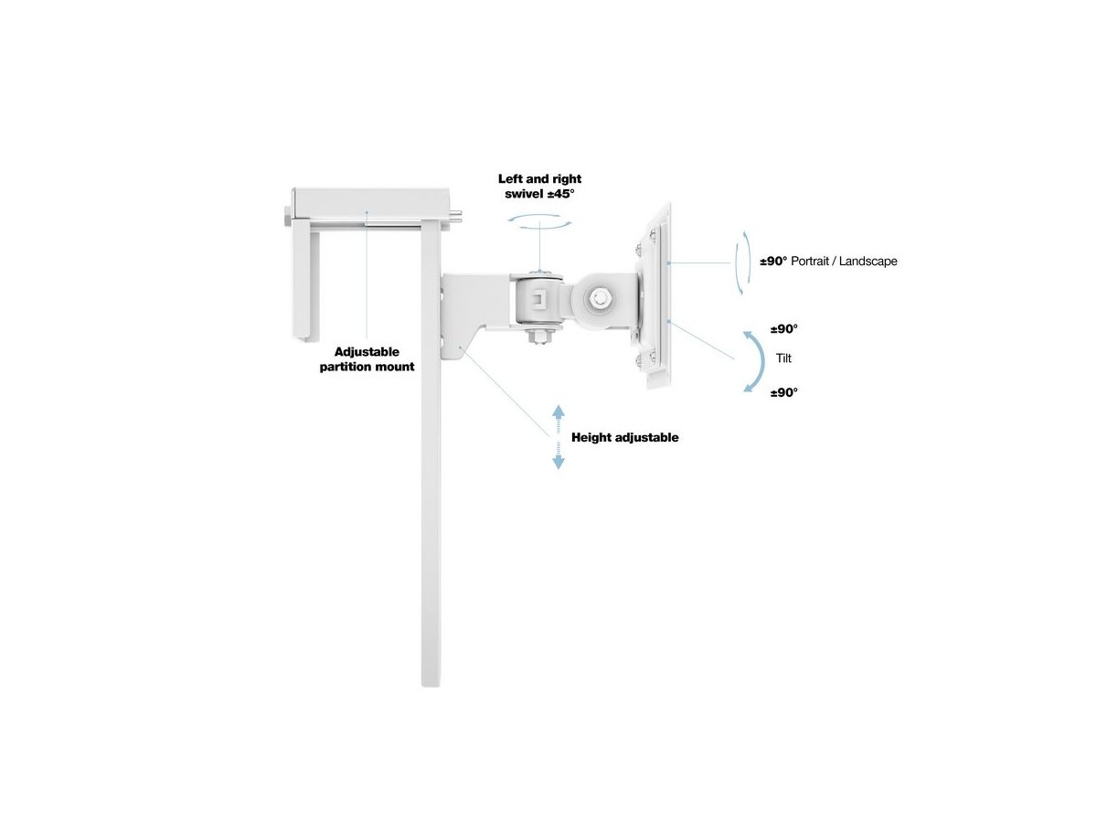 Product code:M VESA Partition Monitormount 75/100 - steel, height adjustable, tilt & sviwel – white