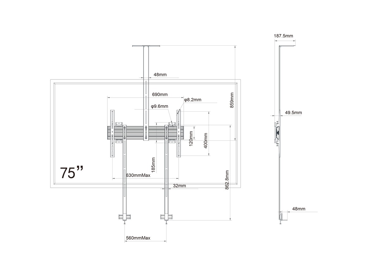 | Max Load: | 70 kg per screen (TUV 30kg) |