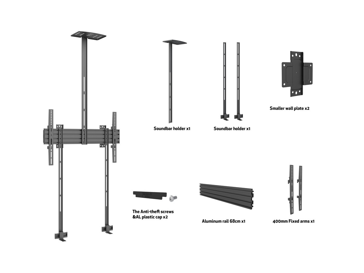 Product code:M Wallmount Pro MBW1U Fixed w. camera and soundbar holder - Wall mount for displays, Modular design, steel, single screen, single side, fixed, VESA Max 400x400 - screen size: 32"-75" - black
