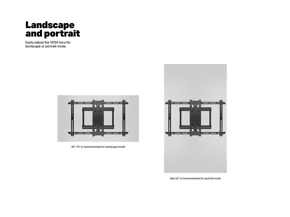 - Universal design supports VESA 200x100, 400x200, 400x400, 600x400