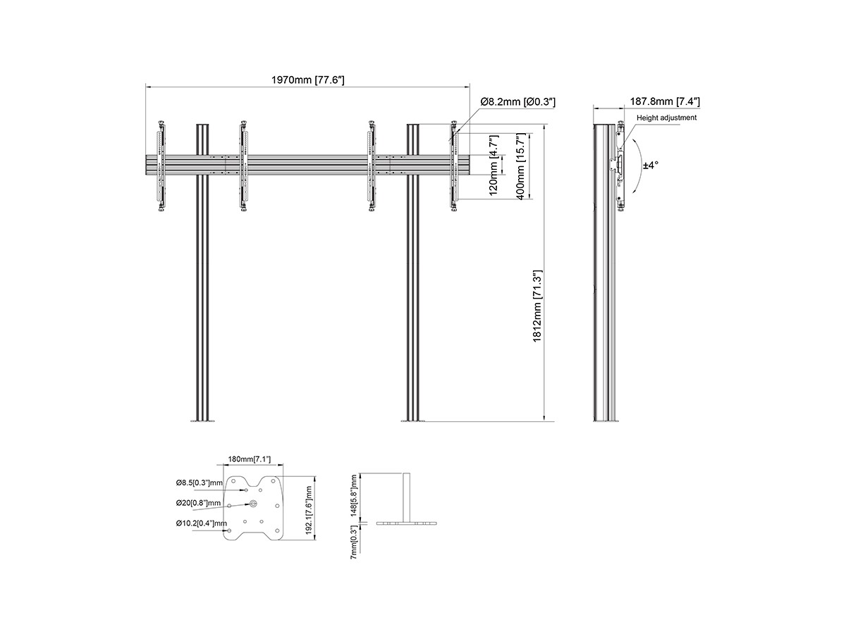 Product code:M Floormount Column Pro 2x1 MBFM2x1U 180 Micro Adjustable - Floor column mount for dual displays, steel, 1.8m height, 2 screens, single side, micro adjustable arms, VESA Max 400x400 - screen size: 32"-65" - black