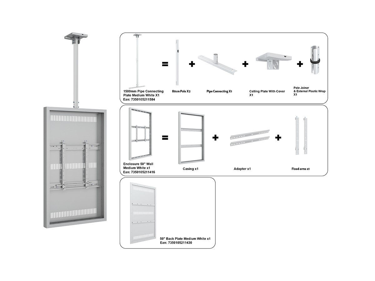 Product code:M Pro Series Enclosure 50" Ceiling Medium White - Universal 50" display enclosure to protect from theft - design- steel cage - white