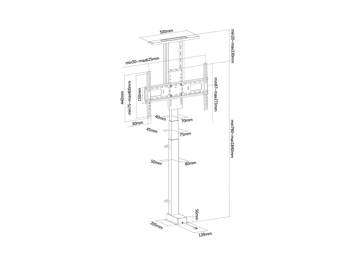 Product code:M Motorized TV Lift X-Large - Stand kit (floor stand) for TV´s and displays - 37"-80" - VESA 200x200 - 600x400 - maxload 60kg - black