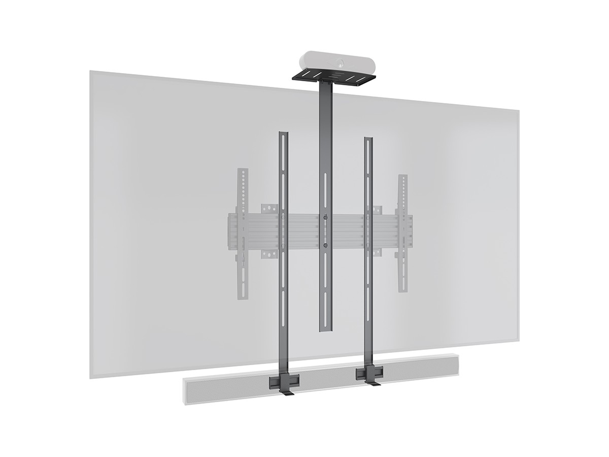 Create a meetingroom solution. Poly, Logitech and Yealink are a few of the popular meetingroom brands for cameras and or videobars that can be used with ths camerashelf (always check weight and measurements). Attach the camera solution over or under the display.