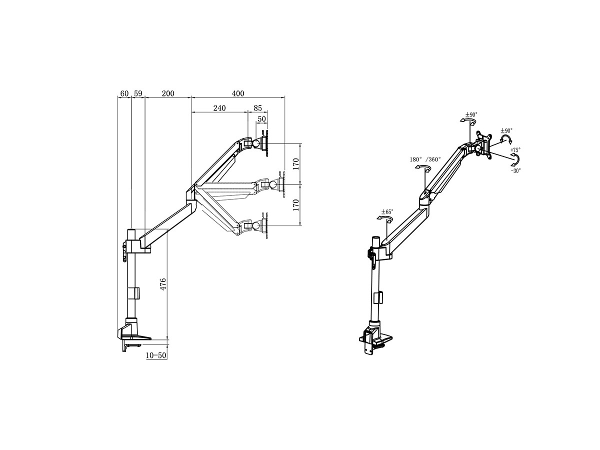 Product code:Multibrackets M VESA Gas Lift Arm Basic Pole - Mounting kit ( articulating arm, desk clamp mount ) for displays - aluminum - black - VESA: 75/100 - screen size: 15" - 34"