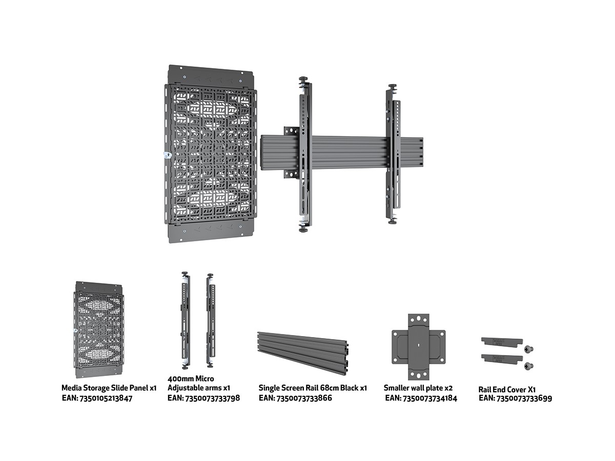 M Pro Series Wallmount MBW1U Media Storage is a compatbile with the M Pro Series Wallmounts.