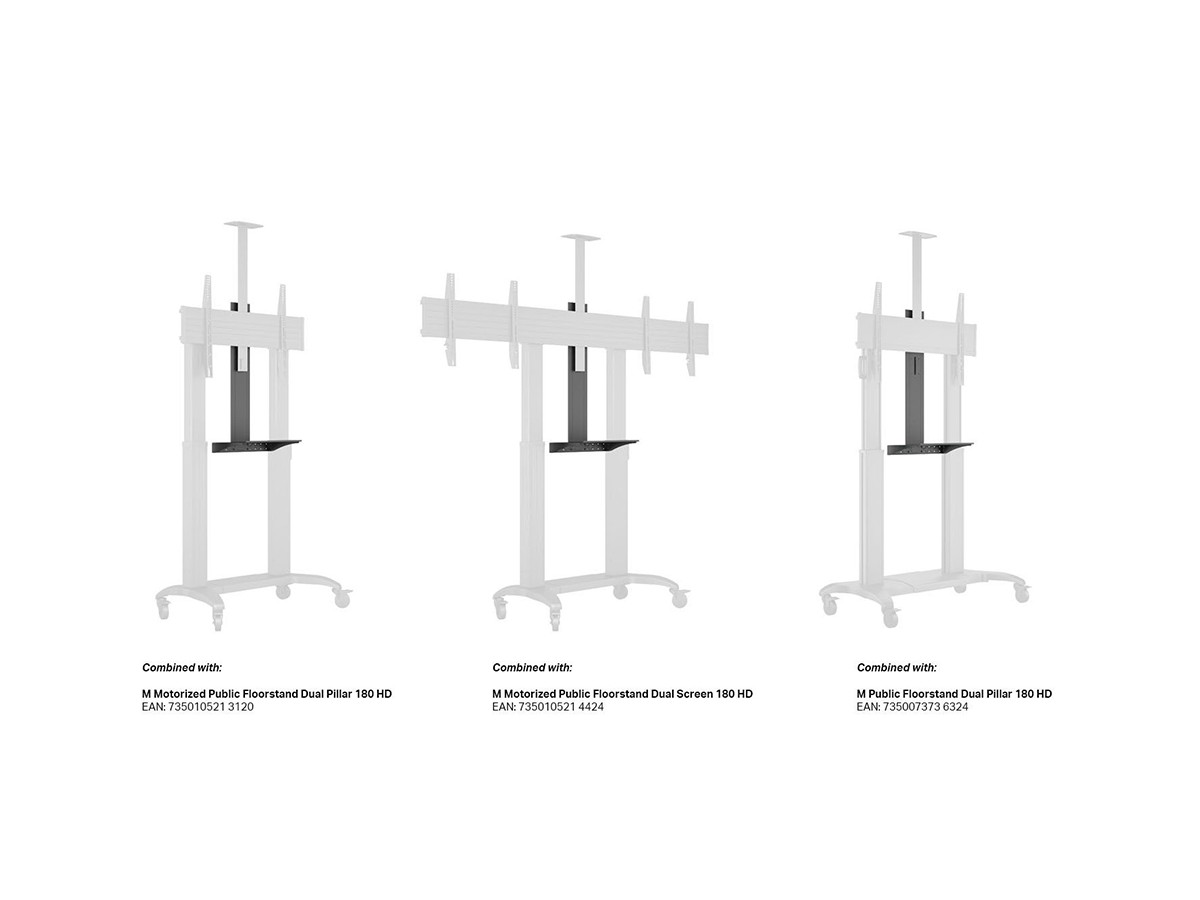Product code:M Motorized Public Floorstand Shelf Dual Pillar 180 HD - Shelf for personal computer / mediaplayer / accessories - steel - black - floor stand mountable