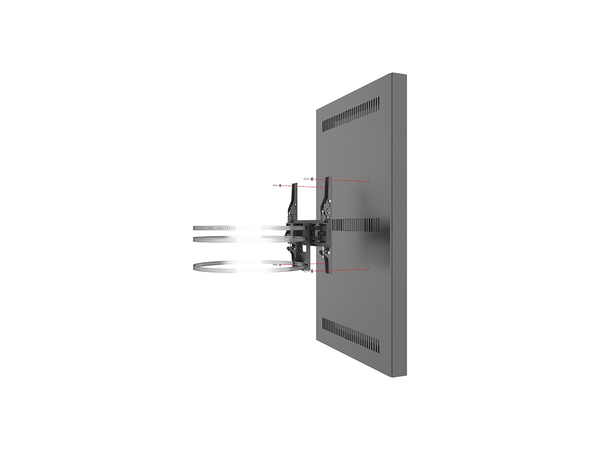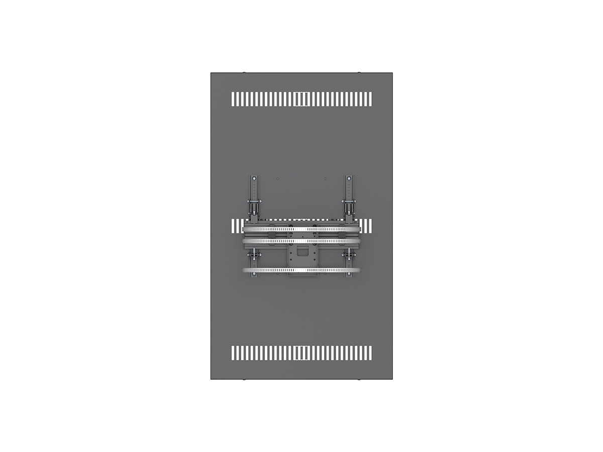 This clean styled black Pro Series Enclosure 55” Column brings new flexibility to the digital signage enclosure market while maintaining a sleek aesthetic to complement a variety of environments and different diameters of columns. A depth-adjustable exterior frame allows for a variety of displays to be used. Reversible hinges help avoid installation and service obstructions, and the exclusive design. Depth-adjustable exterior frame. Unparalleled service and maintenance access. Integrated passive cooling vents with active thermal management options. Designed to compensate for uneven walls, keeping front of frame flat. Tamperproof security hardware protects technology investments. Tool-free on-wall storage with Middle Atlantic's Lever Lock technology.