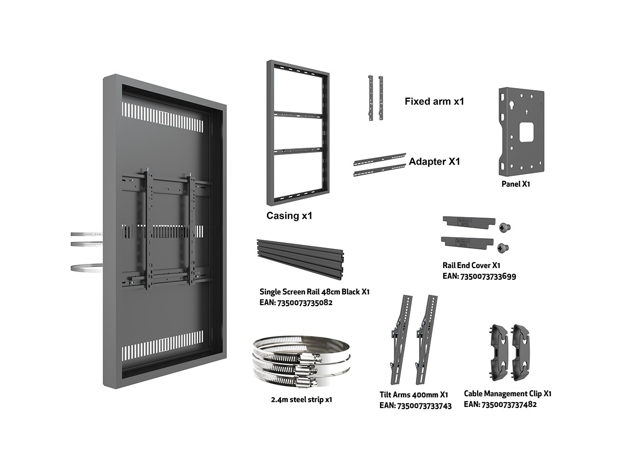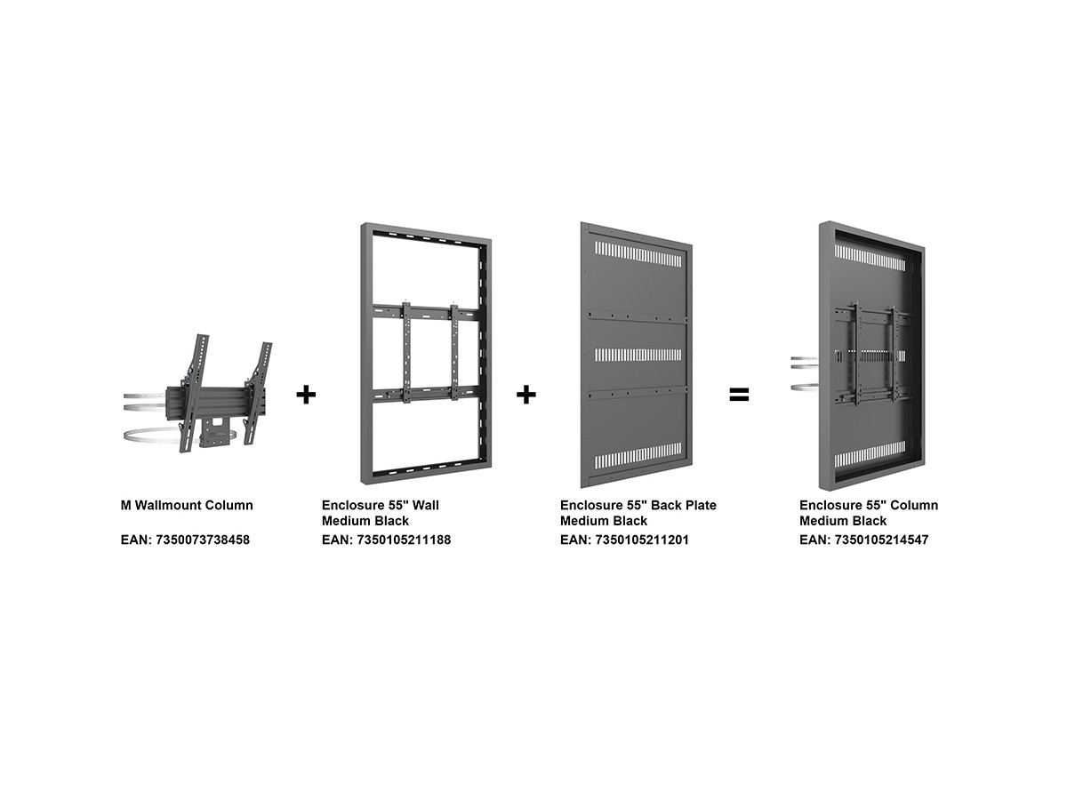 The M Pro Series Enlosure 55” Column Medium Black. A well-designed casing /enclosure. Creating a minimalistic look and possible to mount in both Portrait or Landscape position this casing from Multibrackets® is one of the most versatile to date. Choose between screen sizes and colors. The casing includes after adjustment possibilities and can be used for most brands of signage displays on the market. With a smart thermal management, this solution can fit more brands as well as creating thermal management second to none.