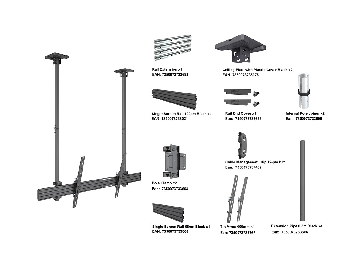 Multibrackets Pro Series Public Ceilingmount is ideal for any large screen digital signage Ceilingmount application, this model is tailored to support the LG 110UM5J.