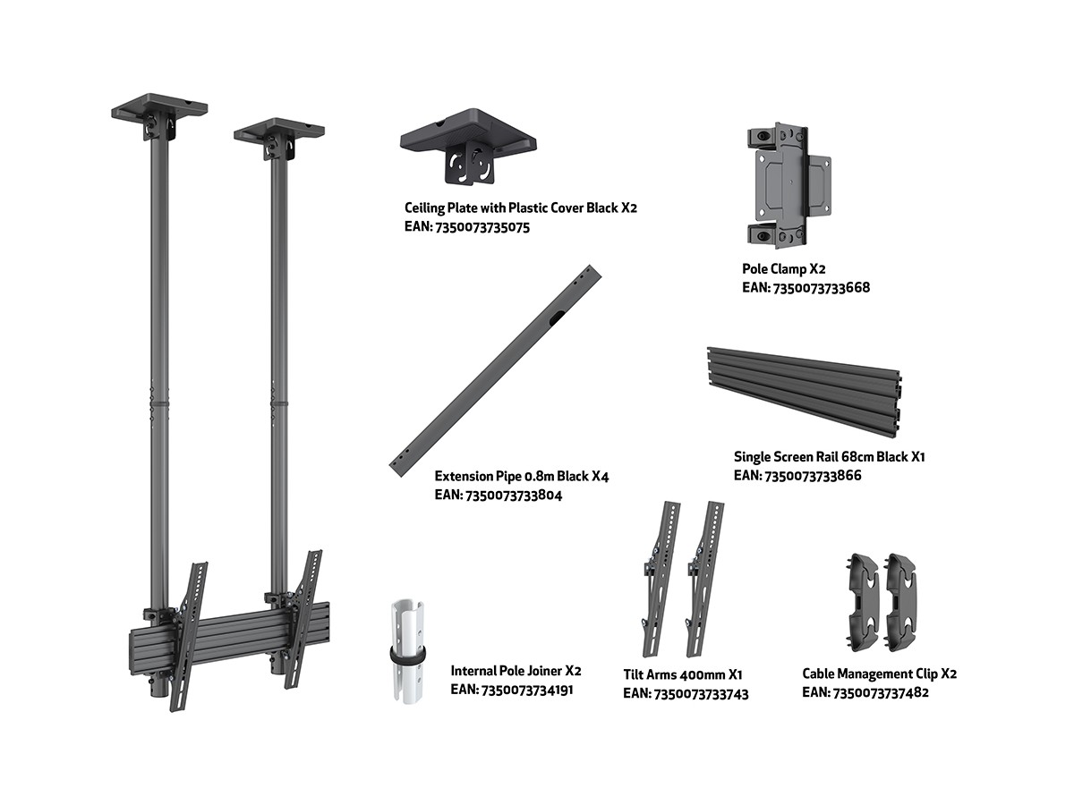 Product code:M Ceiling Mount Pro MBC1USD 600 - Ceiling mount for LCD display, steel, 1.5m length, 1 screen, single side, tilt arms, VESA Max 600x400 - screen size: 40"-100" - black