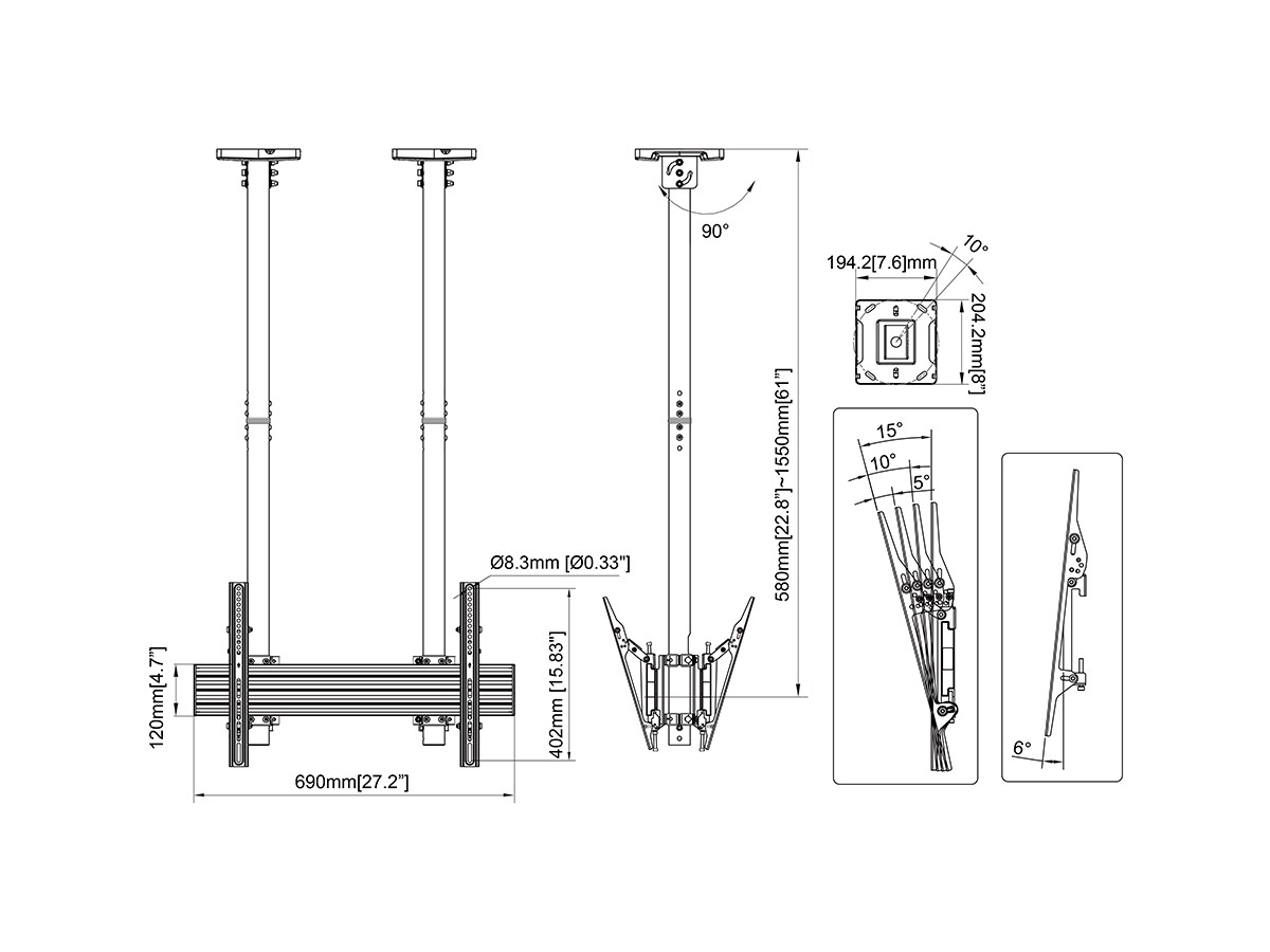 | Tilt: | Yes, -6°~+15° |
