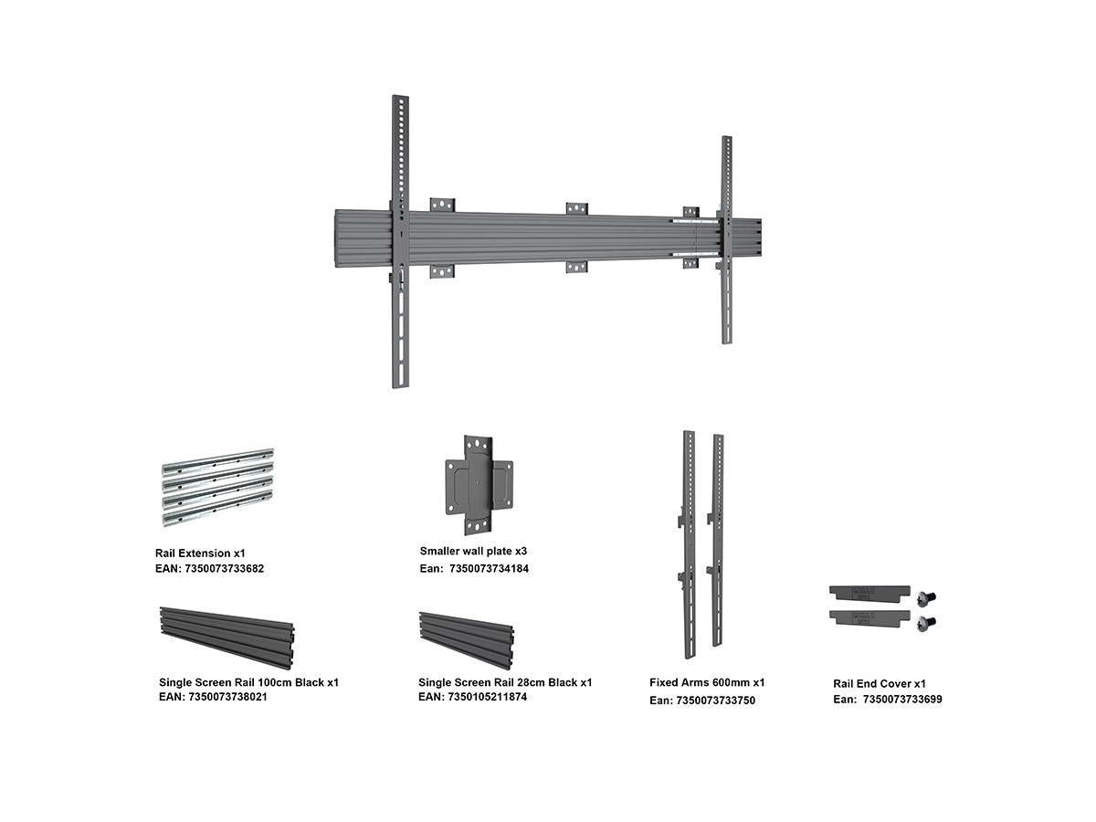The new professional Pro Series A/V line from Multibrackets was designed with the installer in mind. Modular, easy to configure, quick to install, and simple to maintain. Working closely with installers we created a range with close to unlimited flexibility. This model is no exception. The product provides the versatility and flexibility demanded by installers. Based upon the Pro Series strong and ultra-flexible aluminum rail it is completely modular and has built in cable management throughout the entire solution to quicken installation and creating an esthetic result worth the public eye.