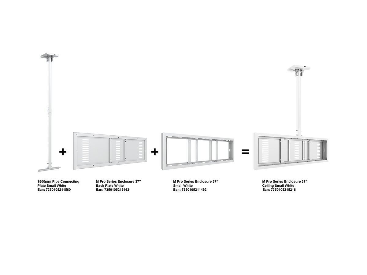 The M Pro Series Enclosure 37" Ceiling Small White. A well-designed casing /enclosure. Creating a minimalistic look and possible to mount in both Portrait or Landscape position this casing from Multibrackets® is one of the most versatile to date. Choose between screen sizes and colors. The casing includes after adjustment possibilities and can be used for most brands of signage displays on the market. With a smart thermal management, this solution can fit more brands as well as creating thermal management second to none.
