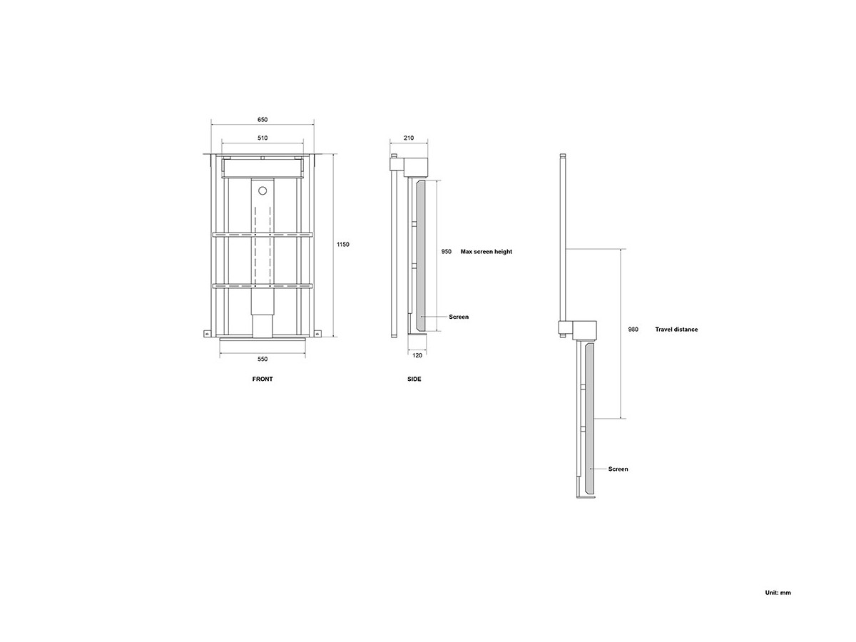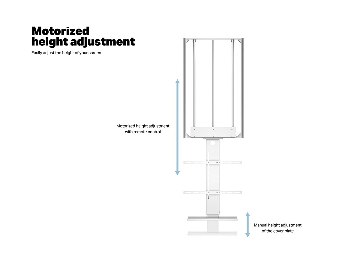 M Motorized Drop Down TV Lift 55"-75" is a hidden motorized ceilingmount optimized for displays between 55 and 75” size. Ideal mount for your TV installation when in need of the hidden screen solution. Often placed in bedrooms, kitchens, offices, schools or stores it can slide your screen down or up.