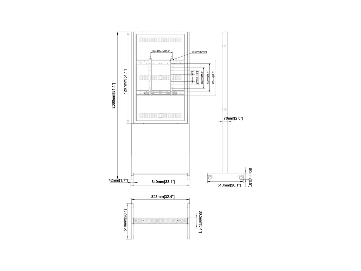 Product code:M Pro Series – Enclosure Totem Covered 55” Wheelbase - VESA max 400x500 - steel - black