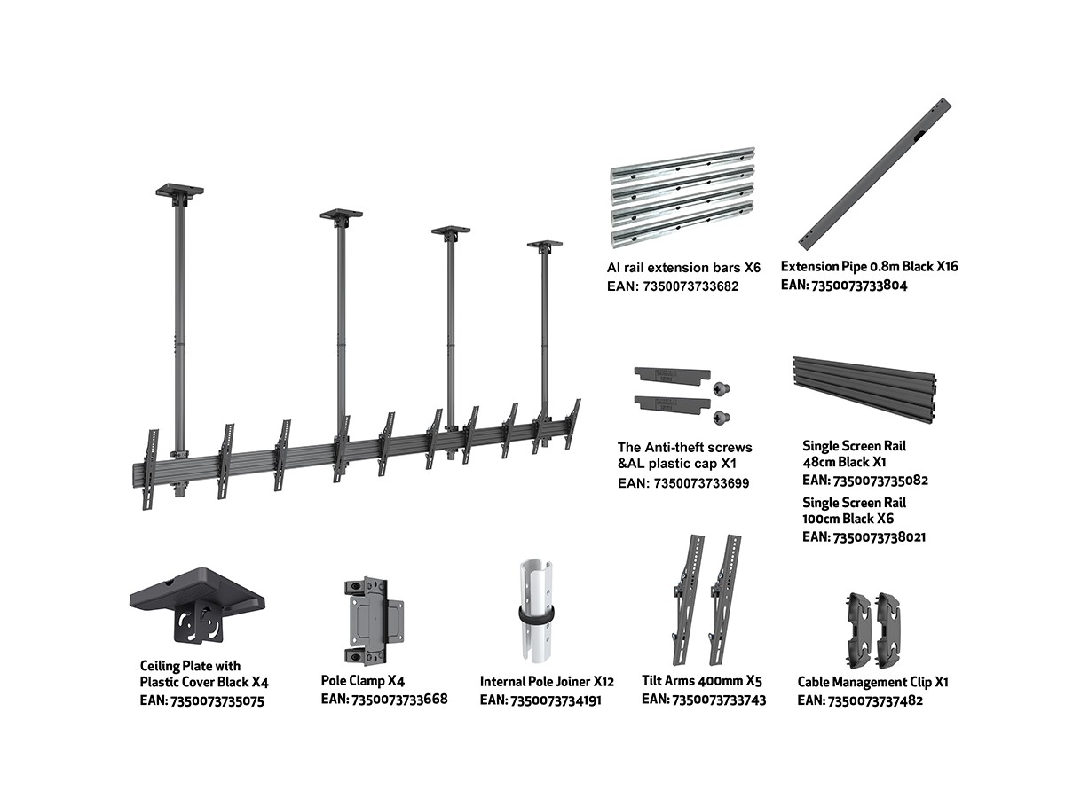 Product code:M Ceiling Mount Pro MBC5X1U - Ceiling mount for LCD display, steel, 3m length, 5 screens, single side, tilt arms, VESA Max 600x400 - screen size: 40"-65" - black