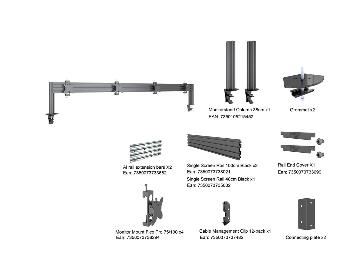 M Pro Series - M Deskmount Column Pro 4x1 MBDM4x1U is a product from for M Pro Series to install a desktop mount on a rail based solution. This setup enables you to adjust your multiple monitors on both height and sideways to increase ergonomic variance of your desk and to increase productivity.