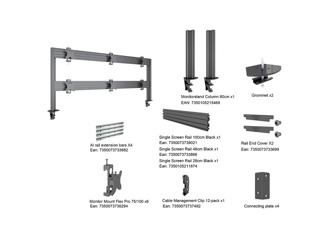M Pro Series - M Deskmount Column Pro MBDM3x2U is a product from for M Pro Series to install a desktop mount on a rail based solution. This setup enables you to adjust your multiple monitors on both height and sideways to increase ergonomic variance of your desk and to increase productivity.