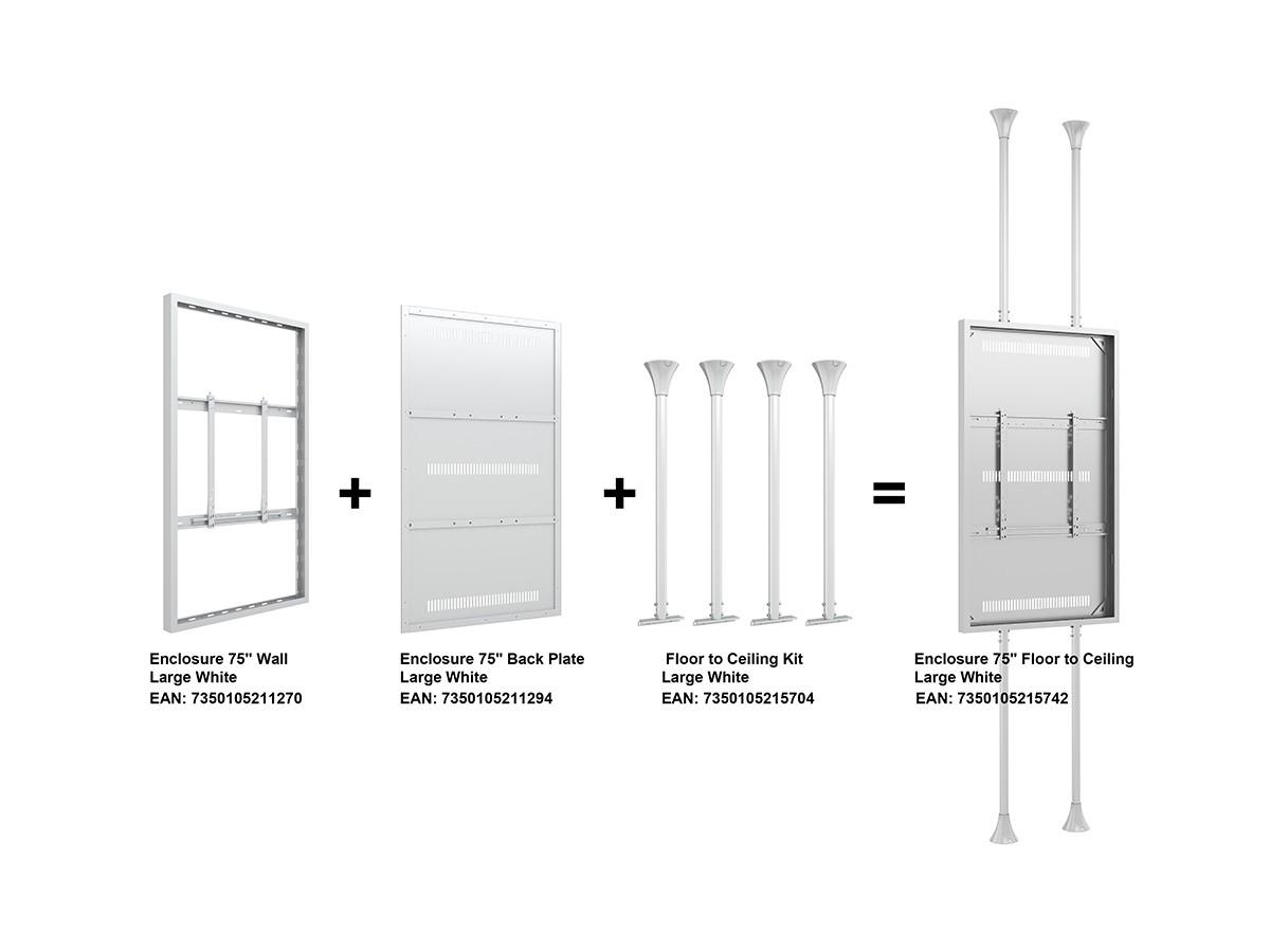 M Pro Series Enclosure - Floor to Ceiling Kit Large White. This is floor to ceiling installation kit that works well with the Multibrackets Enclosures 75”-98”.
