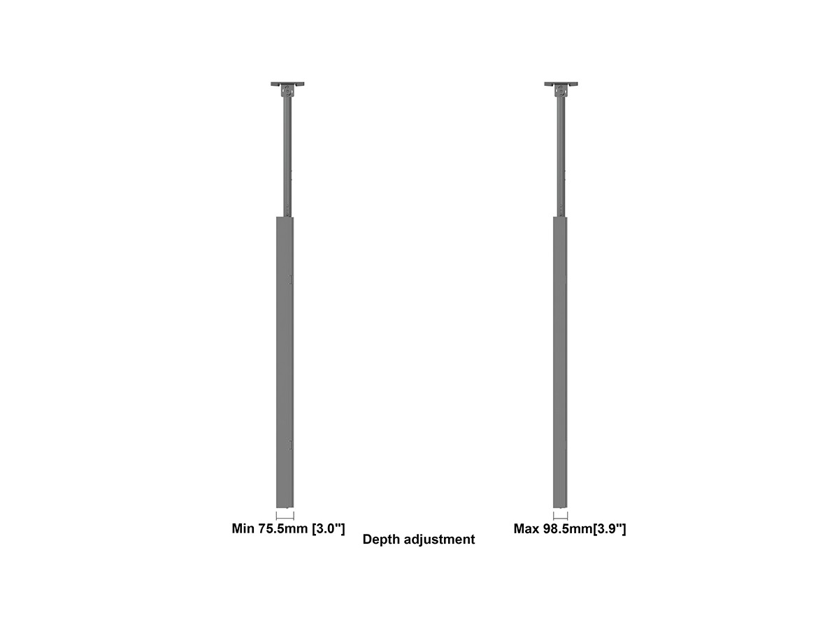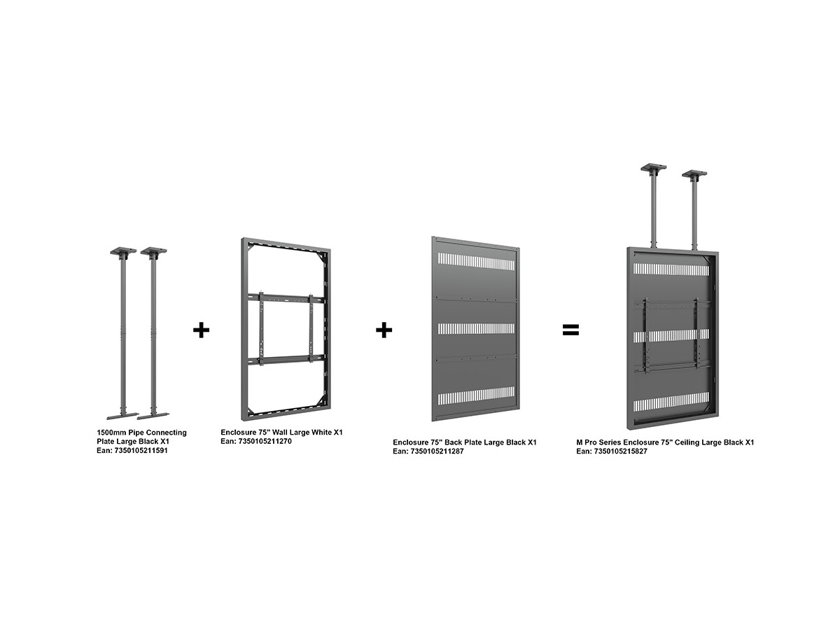 The M Pro Series Enclosure 75" Ceiling Medium Black. A well-designed casing /enclosure. Creating a minimalistic look and possible to mount in both Portrait or Landscape position this casing from Multibrackets® is one of the most versatile to date. Choose between screen sizes and colors. The casing includes after adjustment possibilities and can be used for most brands of signage displays on the market. With a smart thermal management, this solution can fit more brands as well as creating thermal management second to none.