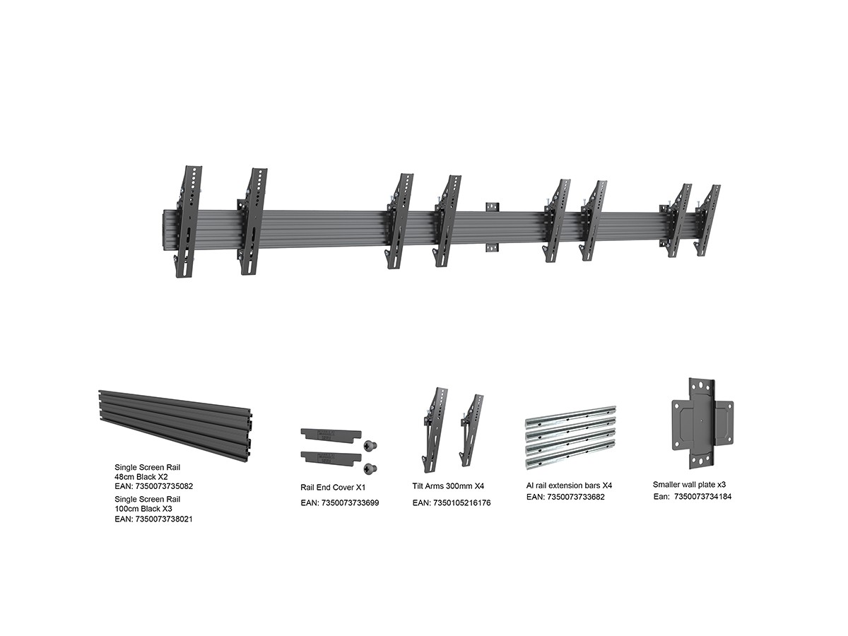 The new professional Pro Series A/V line from Multibrackets was designed with the installer in mind. Modular, easy to configure, quick to install, and simple to maintain. Working closely with installers we created a range with close to unlimited flexibility. This model the M Menu Board Wall Mount Pro MBW4X1U VESA 300 is no exception. The product provides the versatility and flexibility demanded by installers. Based upon the Pro Series strong and ultra-flexible aluminum rail it is completely modular and has built in cable management throughout the entire solution to quicken installation and creating an esthetic result worth the public eye.