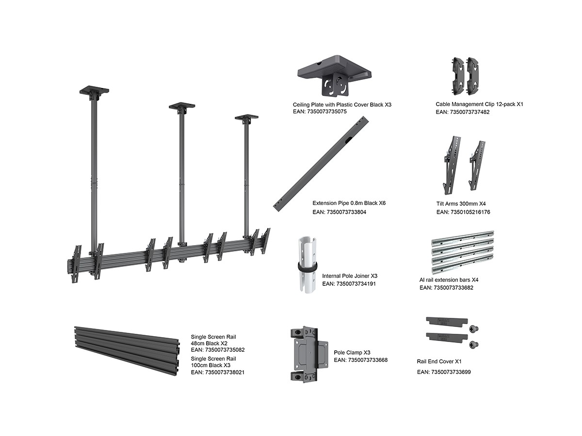 Multibrackets M Menu Board Ceiling Mount Pro MBC4X1U VESA 300 is our innovative - ready to be installed Single-Row Display Ceiling Mount.