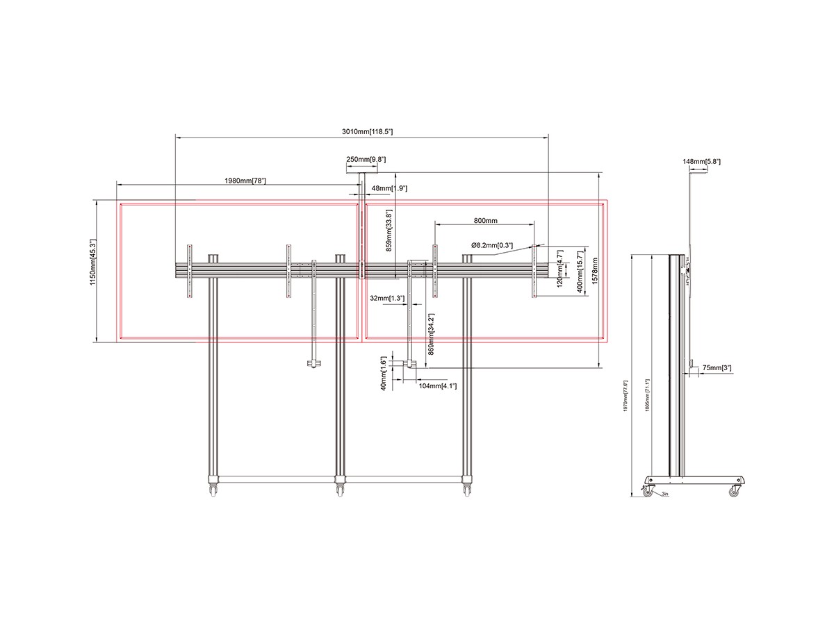 | Max Load: | 65 kg per screen |