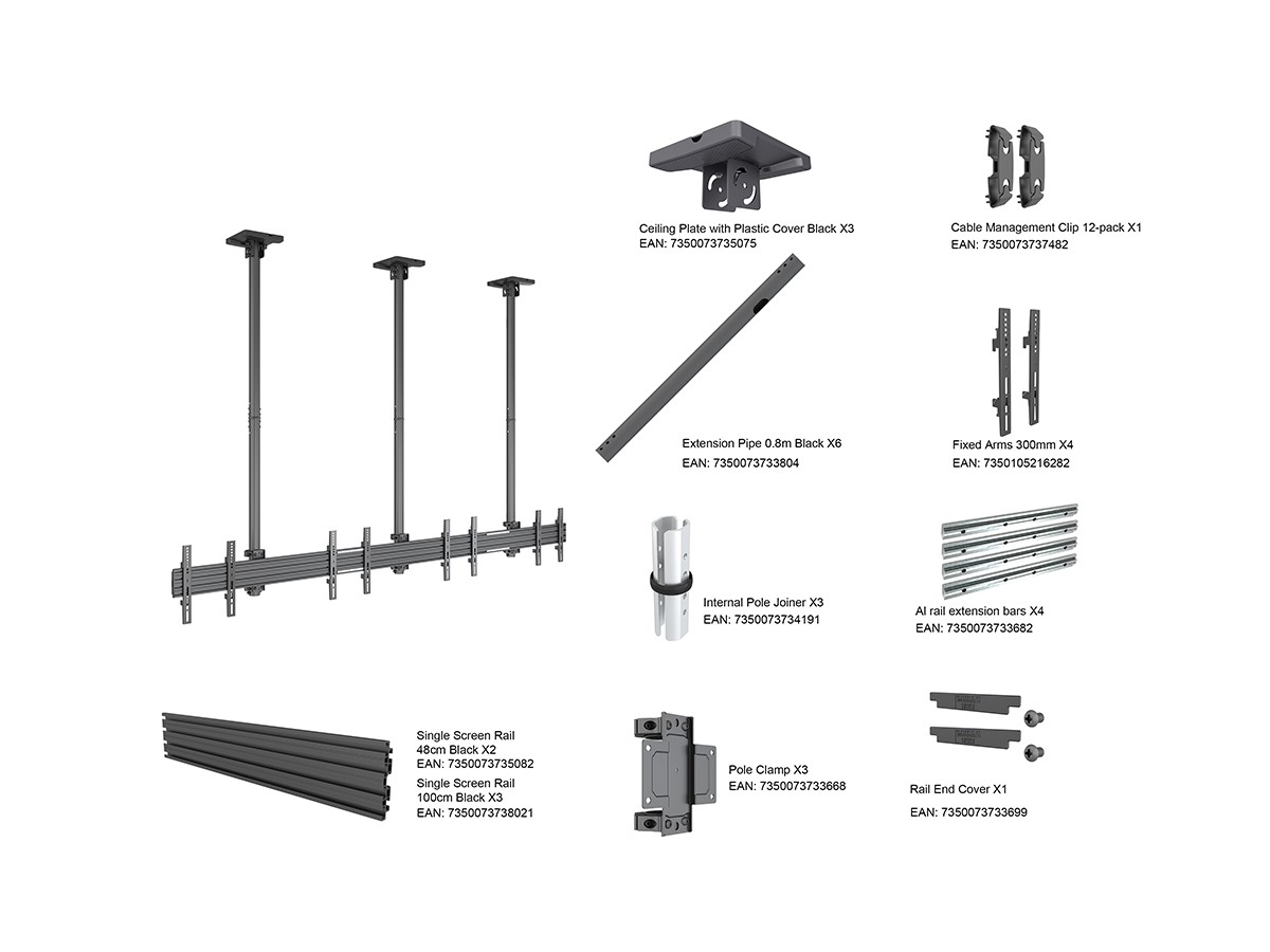 Multibrackets M Menu Board Ceiling Mount Pro MBC4X1U VESA Fixed 300 is our innovative - ready to be installed Single-Row Display Ceiling Mount.