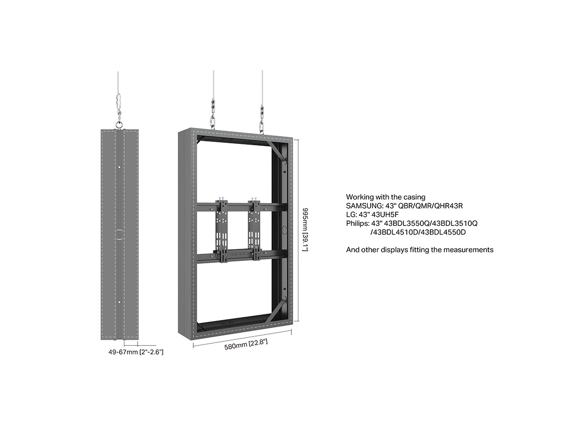 The M Pro Series Enclosure 43" Wire Medium B2B Black. A well-designed casing /enclosure. Creating a minimalistic look and possible to mount in both Portrait or Landscape position this casing from Multibrackets® is one of the most versatile to date. Choose between screen sizes and colors. The casing includes after adjustment possibilities and can be used for most brands of signage displays on the market. With a smart thermal management, this solution can fit more brands as well as creating thermal management second to none.