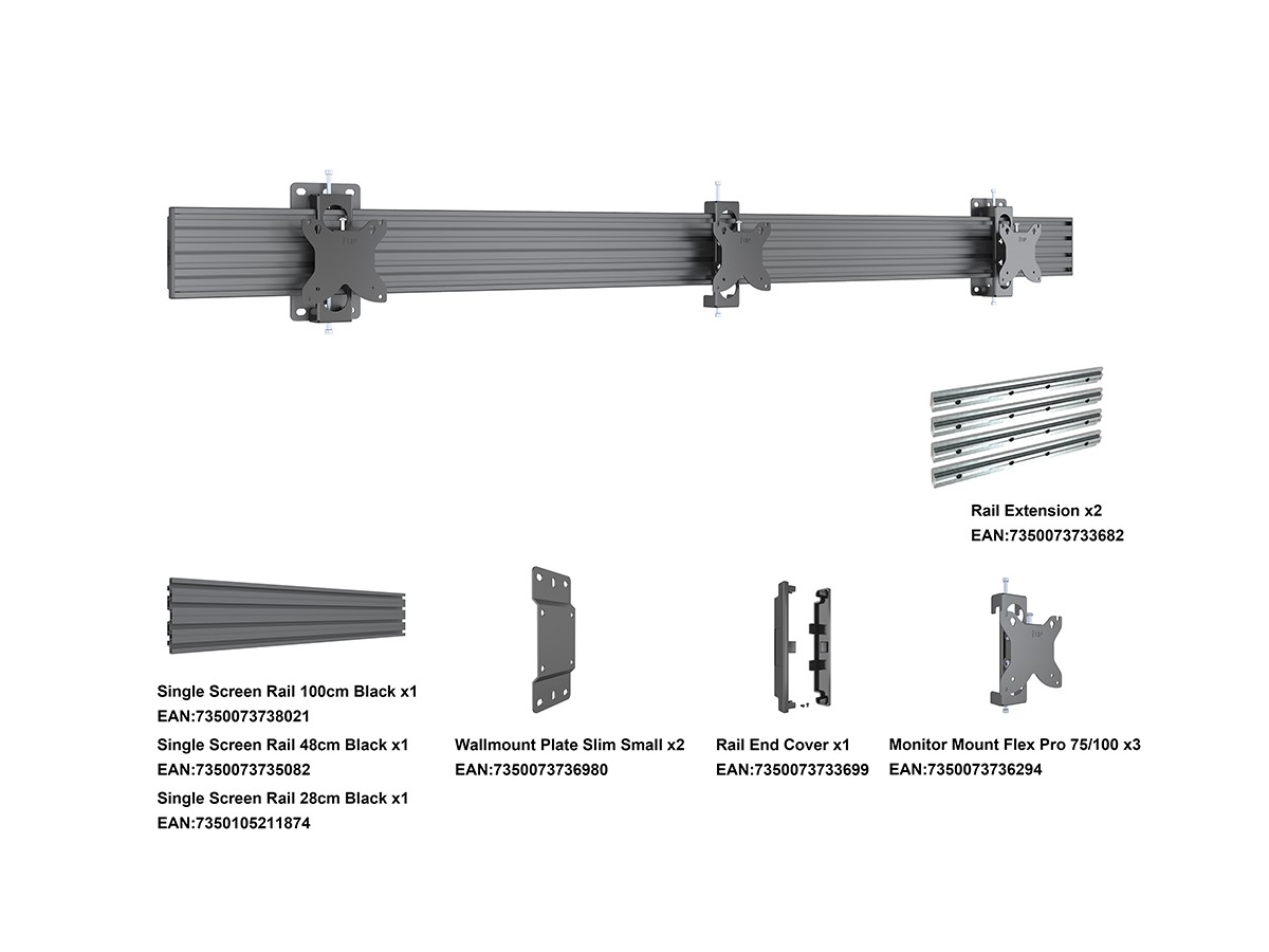 Product code:M Wallmount Pro MBW3U Tilt 75/100 - Wall mount for LCD display, steel, 3 screen, single side, tilt, VESA Max 100x100 - screen size: 15"-32" - black