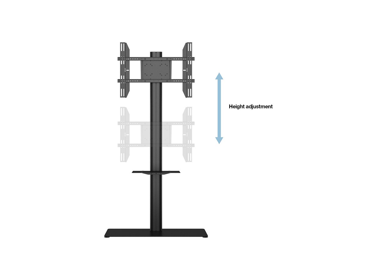 Multibrackets M Display Stand 180 Single Black w Floorbase/Shelf is the entry level floor stand from Multibrackets and one of the most flexible and multifunctional display stands of its kind. With the 180cm height the floor stand is useful for both for home and work like conference rooms and other situations where the viewers are sitting down or standing up.