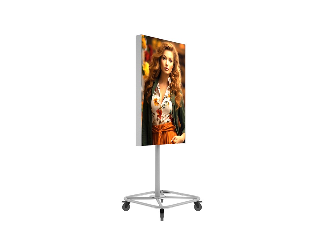 This Quadpod has built in wheels so they are easy to move around. Place them one by one or put them together to operate them as one large signage wall.