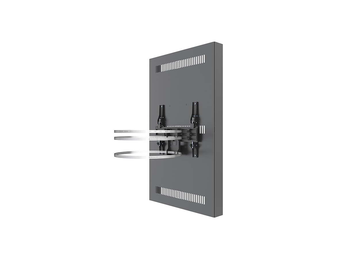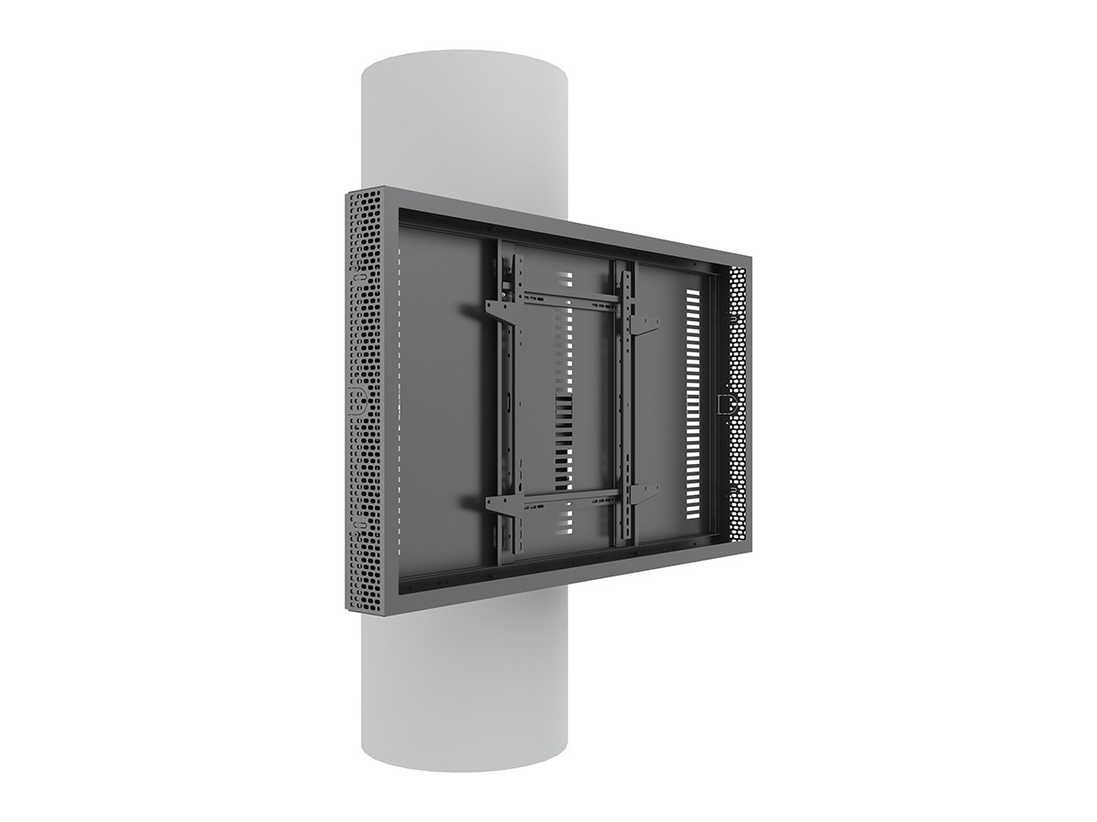 This clean styled black Pro Series Enclosure 55” Column brings new flexibility to the digital signage enclosure market while maintaining a sleek aesthetic to complement a variety of environments and different diameters of columns. A depth-adjustable exterior frame allows for a variety of displays to be used. Reversible hinges help avoid installation and service obstructions, and the exclusive design. Depth-adjustable exterior frame. Unparalleled service and maintenance access. Integrated passive cooling vents with active thermal management options. Designed to compensate for uneven walls, keeping front of frame flat. Tamperproof security hardware protects technology investments. Tool-free on-wall storage with Middle Atlantic's Lever Lock technology.
