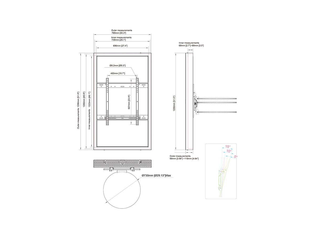 | Installation: | SAMSUNG 55" High Brightness OM55N-S, OM55B LG-55XS4J, LG-55XS2C, LG-55XS4J-B Ilyama LH5554UHS-B1AG Philips-55BDL4002H + other 55" displays not model specified here (check measurements). |