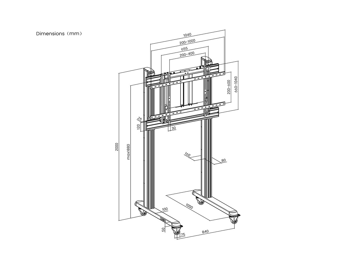 The M Counterbalanced Floorstand a Dynamic Height adjustable portable TV cart for Interactive display panel allows users to raise and lower large displays with only a light effort to varied vertical positions. With a vertical movement range of 400mm the M Counterbalanced Floorstand is the perfect for stand for schools using interactive displays where small children need to reach the interactive panel. The portable design lets you wheel your display from room to room and lockable wheels secures the stand in fixed position. Faster and easier than traditional electric mounts with no power required.