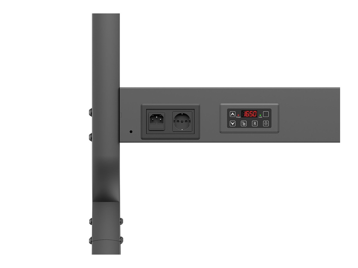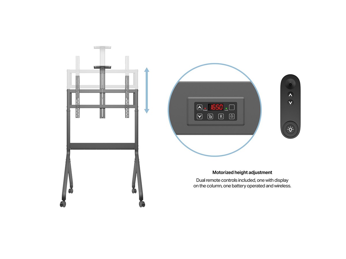The motor-driven height adjustment allow you to move the display up or down to a suitable height for any presentation or digital signage situation. The wide reach up or down makes it suitable for both a sitting or standing audience, making this product a perfect multifunctional solution for any need.
