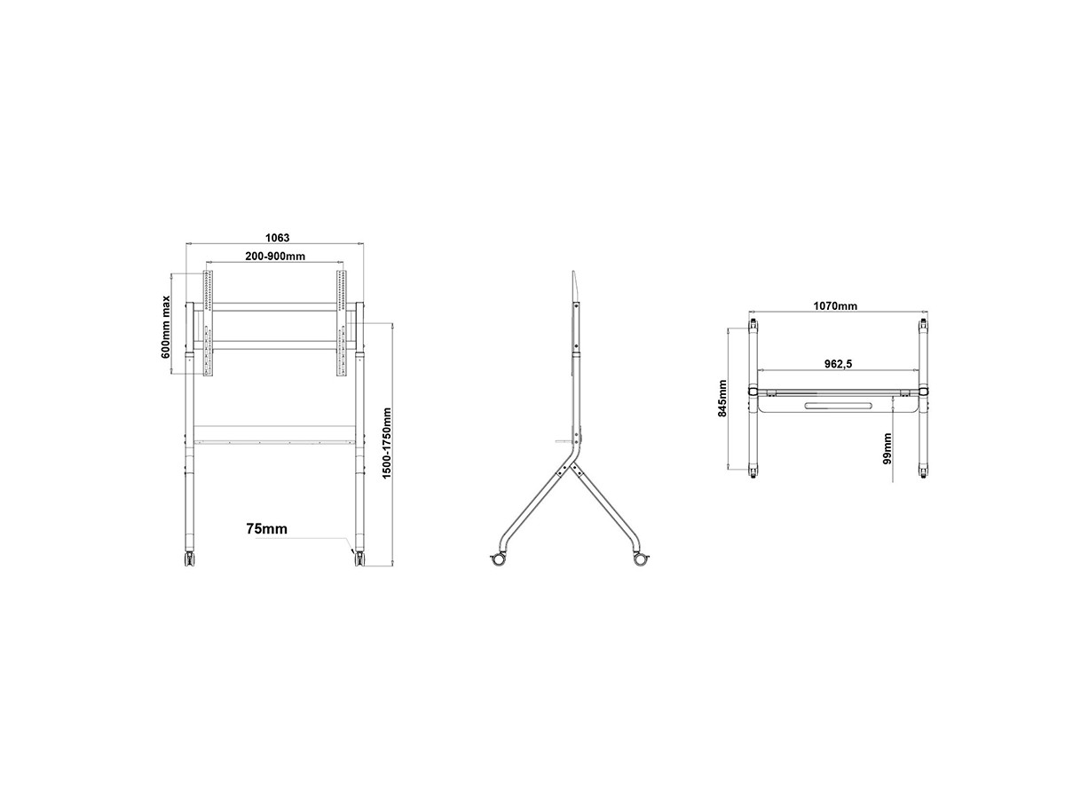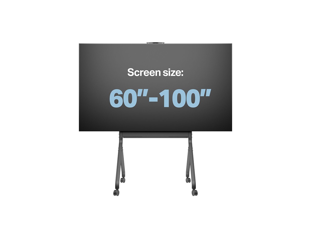 Product code:M Motorized Collaboration Floorstand 60"-100" - Stand for video conferencing system - screen size: 60" - 100" - max load: 90kg - VESA: 200x200-900x600mm - Camerashelf and Mediashelf included - Dark antracit grey