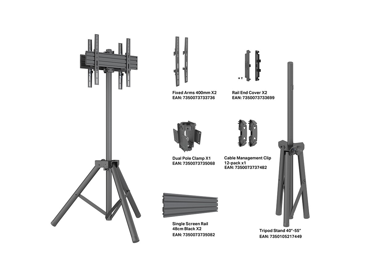 Multibrackets Pro Series M Pro Series – Tripod Stand B2B 32”-75” is our innovative - ready to be installed as a Dual Sided-Display Floorstand Mount.
