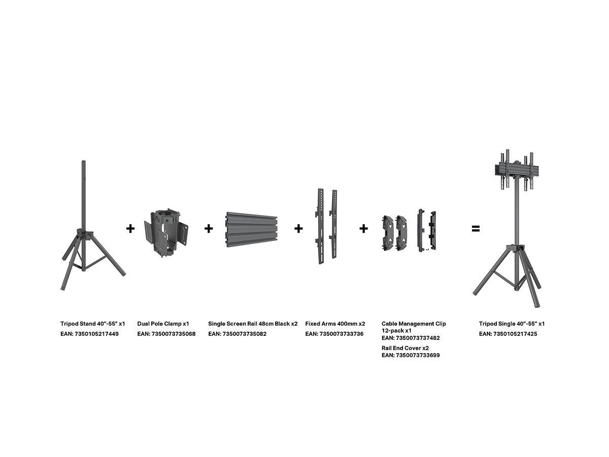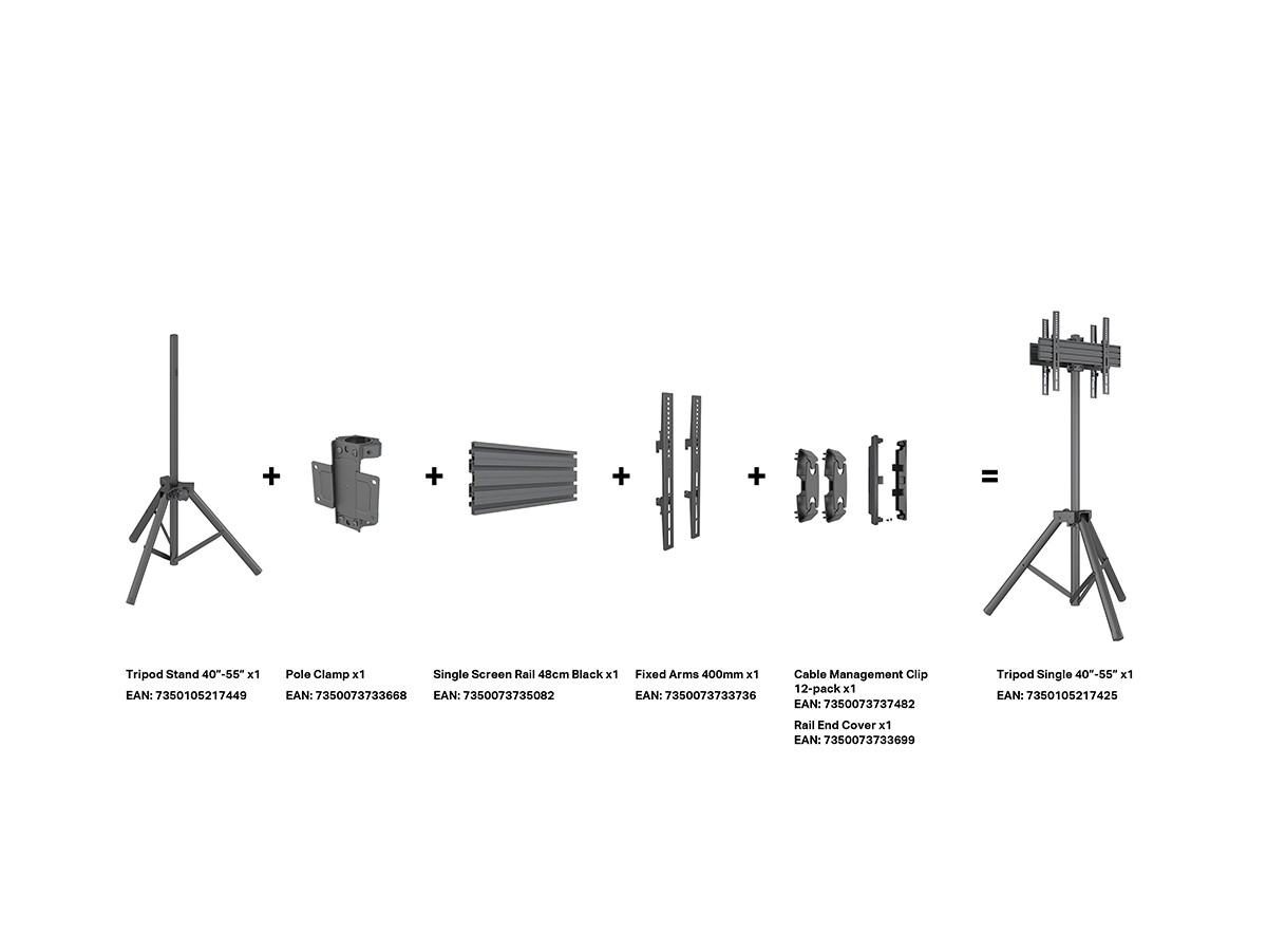 M Pro Series – Tripod Stand + Column is an optional part for the Multibrackets Pro Series. This part should be combined with 7350073733668 and rail of choice. The vast selection and combinations of Pro Series Tripod Stand from Multibrackets was designed to be heavy duty, simple to install and create a servicing position that makes your signage displays easily accessible for maintenance and work, without having to dismantle the display.