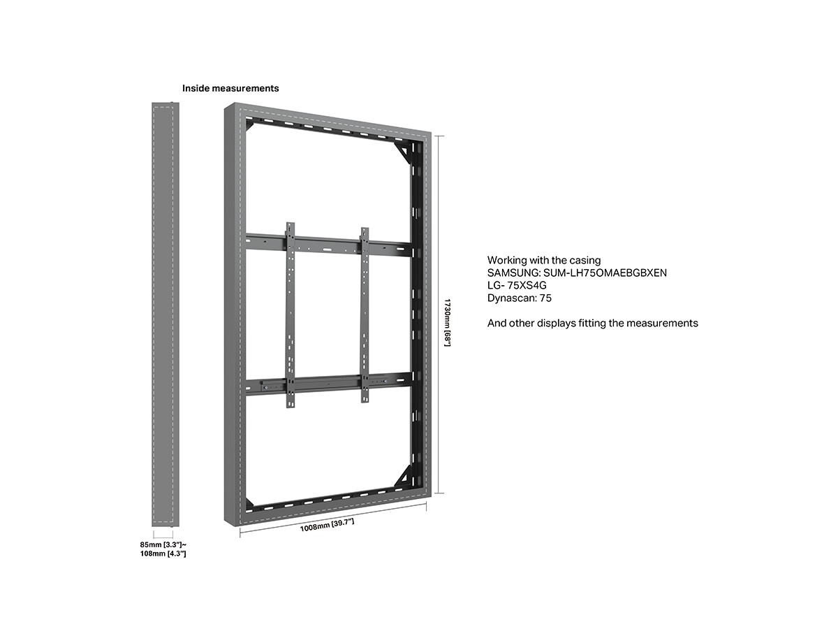 This Universal 75" High Brightness Casing/ Enclosure was designed to blend in perfectly in most environments. Added its ingenious design makes many smart options available right away or after time, mounting solutions with wire function, floor to ceiling or floor stand and ceiling mounting is available.