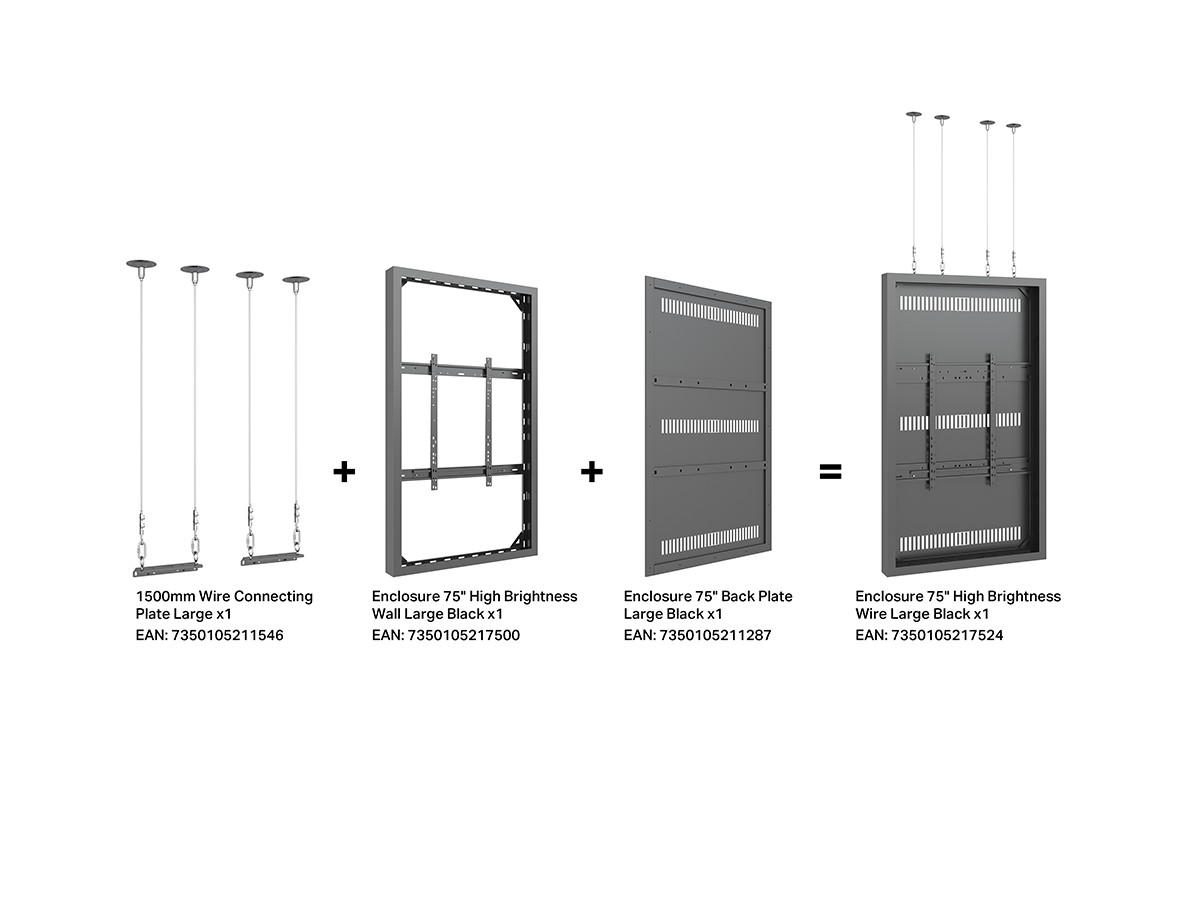 The M Pro Series Enclosure 75” High Brightness Wall Large Black. A well-designed casing /enclosure. Creating a minimalistic look and possible to mount in both Portrait or Landscape position this casing from Multibrackets® is one of the most versatile to date. Choose between screen sizes and colors. The casing includes after adjustment possibilities and can be used for most brands of signage displays on the market. With a smart thermal management, this solution can fit more brands as well as creating thermal management second to none.