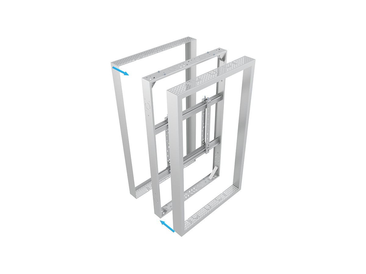 Creating a minimalistic look and possible to mount in both Portrait position this 55” front frame from Multibrackets® is a well-ventilated and clean designed, adding versatile to the Multibrackets 55” casing. Used with the 55” enclosure and creating the extra space and ventilation that a high brightness display uses and needs for its depth inside the casing.