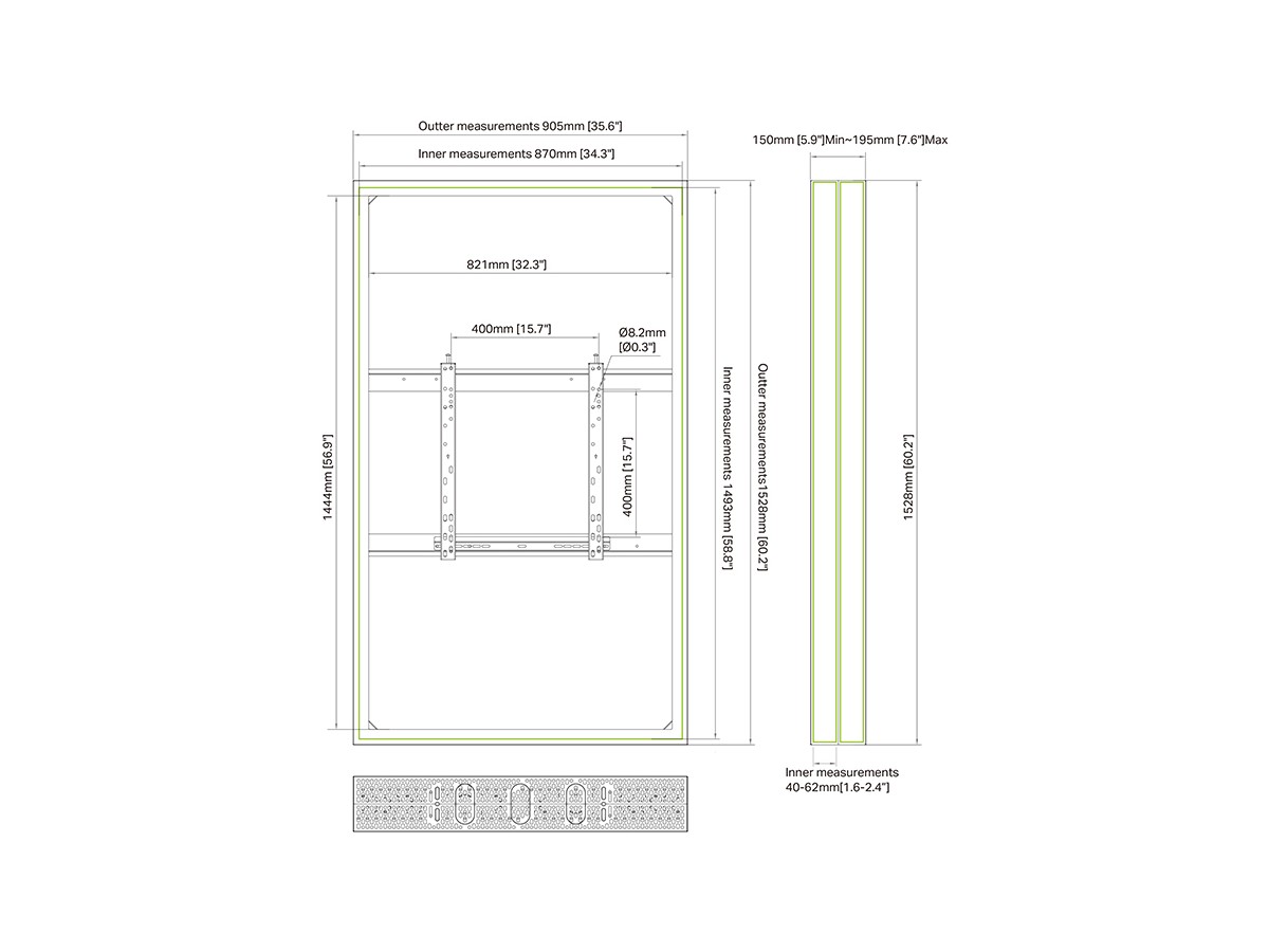 This clean styled Pro Series Enclosure brings new flexibility to the digital signage enclosure market while maintaining a sleek aesthetic to complement a variety of environments. A depth-adjustable exterior frame allows for a variety of displays to be used. Reversible hinges help avoid installation and service obstructions, and the exclusive design. Depth-adjustable exterior frame. Unparalleled service and maintenance access. Integrated passive cooling vents with active thermal management options. Designed to compensate for uneven walls, keeping front of frame flat. Tamperproof security hardware protects technology investments.
