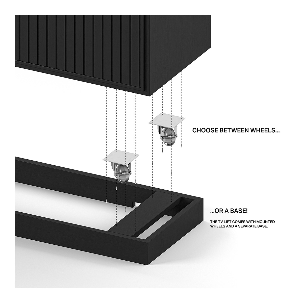 Use it with a base or wheels, both included