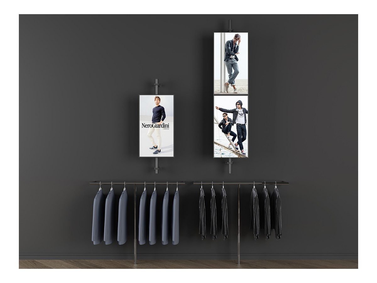 The Wall to Wall mount is very well designed. Perfect in store windows or indoors facing out.