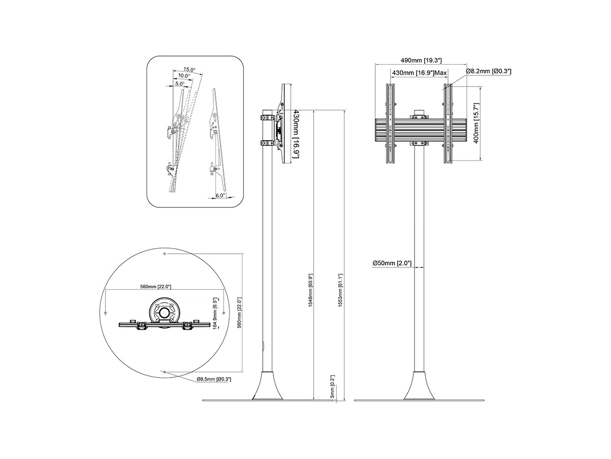 Multibrackets 7350105218354 M Single Pole Floorbase Round 32''- 65'' VESA 400